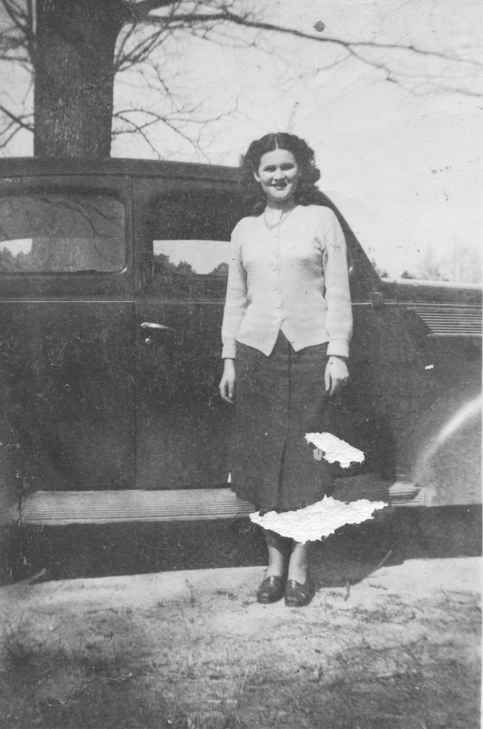 When she came back home she didn’t expect to see Bobby right away. There was no electricity or phone at her house, so of course she didn’t hear from him. It had been raining for several days, and the private road to her house (the old Shelton house I wrote about earlier) was notoriously impassable after heavy rain. One spot in particular, a low area where today Smith-Sproles Road and Nelson Shelton Road separate, turned to something like quicksand in bad weather. A car could quickly sink up to the axles and need a tractor or a mule to pull it out. Nelson sometimes had to park his car out on the main road and hike to it if the weather was bad.