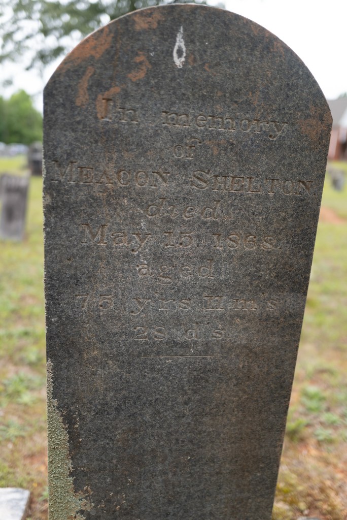 Part of the confusion stems from the common practice of naming children after their fathers, grandfathers, uncles, cousins, etc. There are an awful lot of Nelsons, Spencers, Crispens, Ralphs, and Samuels, even several Leroys. Add to that the extra complication that one of the Spencer Sheltons lost his mother soon after birth, and he was taken to the Rock Springs area of North Carolina to be cared for by “relatives.” There were several variations of the story that Z.F. was told, so either that Spencer’s father, Spencer, died soon after, in Virginia or North Carolina. Spencer (the baby in the story) is listed as “my brother” by Meacon Shelton, although he was actually Meacon’s nephew. Apparently he was raised by Spencer and Sallie Shelton as if he were their son. I haven’t been able to sort out which of these Spencers are our direct ancestors, but some of them are.