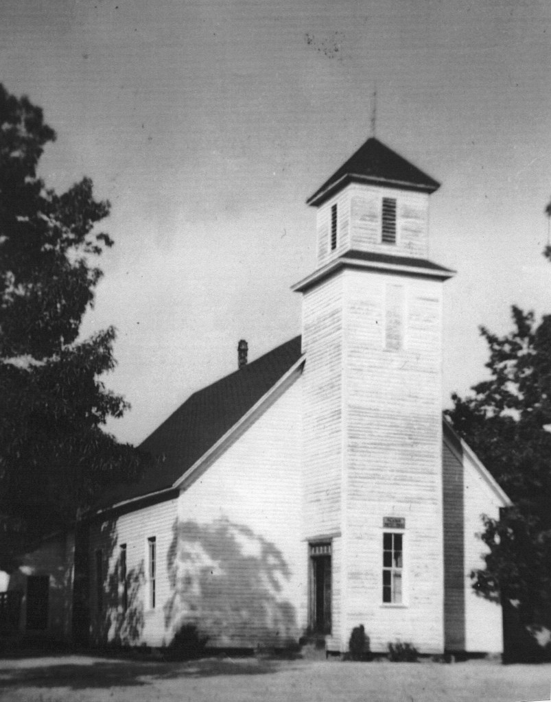 By the time the Sheltons took possession of the farm, the brush arbor had been replaced with a wooden church building. If I remember correctly Mom said she was in fifth grade. Her brother Harold was just a year or so older. Mom said the church paid Harold 25 cents a week to go to church early and start a fire in the stove when needed, then ring the church bell to signal the congregation to service.